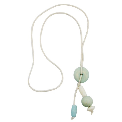 Dezente helle Modeschmuck-Kette in Y-Form mit baumelnden Enden. An die 70cm lange, beigefarbene Baumwollkordel ist die hellblaue, flache, unrunde, ca. 29mm große Mittelperle eingeknotet. An den beiden baumelnden, ca. 10cm langen Kordelenden befinden sich weitere Kunststoffperlen in den Pastellfarben hellblau und beige. Lange Ketten ab 60cm eignen sich gut als Pulloverkette und können ohne einen Verschluss zu öffnen über den Kopf angelegt werden. Alle Bestandteile dieser metallfreien Kette wurden in Deutschland produziert und die Kette in Handarbeit - made in germany - fertiggestellt.