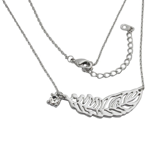 Das kleine feine Collier mit dem 34x11mm großen Anhänger Feder ist 42cm lang, mit dem Distanzkettchen kann es bis auf 47cm verlängert werden. Die filigrane Feder hängt beidseitig aufgehängt an einer 0,8mm dünnen Ankerkette und liegt schön breitgefächert im Halsausschnitt, daneben baumelt ein 4mm großer gefasster Kristall-Glasstein für den Glitzer-Effekt. Die Feder gilt als Symbol der schreibenden Zunft, den Journalisten und Schriftstellern, aber auch jenen, die noch romantische Briefe schreiben.
