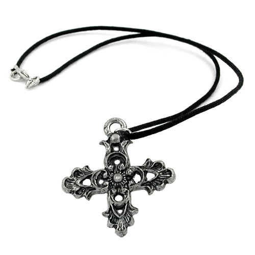 Dieser außergewöhnliche gleichschenklige Kreuz-Anhänger aus einer Metall-Legierung mit dem beidseitigen filigranen Muster wurde im Zinn-Schleuderguss-Verfahren hergestellt. Der mit 92% hohe Zinnanteil sorgt dabei für die antik aussehende Oberfläche. Der 33x33mm große Zinn-Anhänger hängt an einer 0,6mm dünnen schwarzen gewachsten Baumwollkordel mit silberfarbenem Karabiner-Verschluss. Alle Bestandteile dieser Kette wurden in Deutschland produziert und die Kette selbst in Handarbeit - made in germany - fertiggestellt.