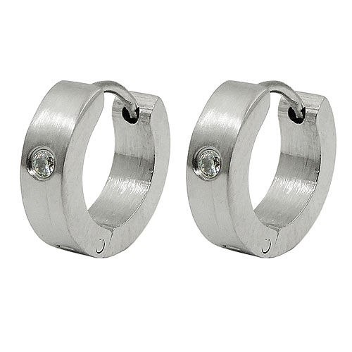 Edel und zeitlos elegant ist diese Klappcreole aus Edelstahl mit seidenmatter Oberfläche. Der kleine geschliffene Glasstein funkelt dezent im Sonnenlicht. Ein schönes Schmuckstück für viele Gelegenheiten.