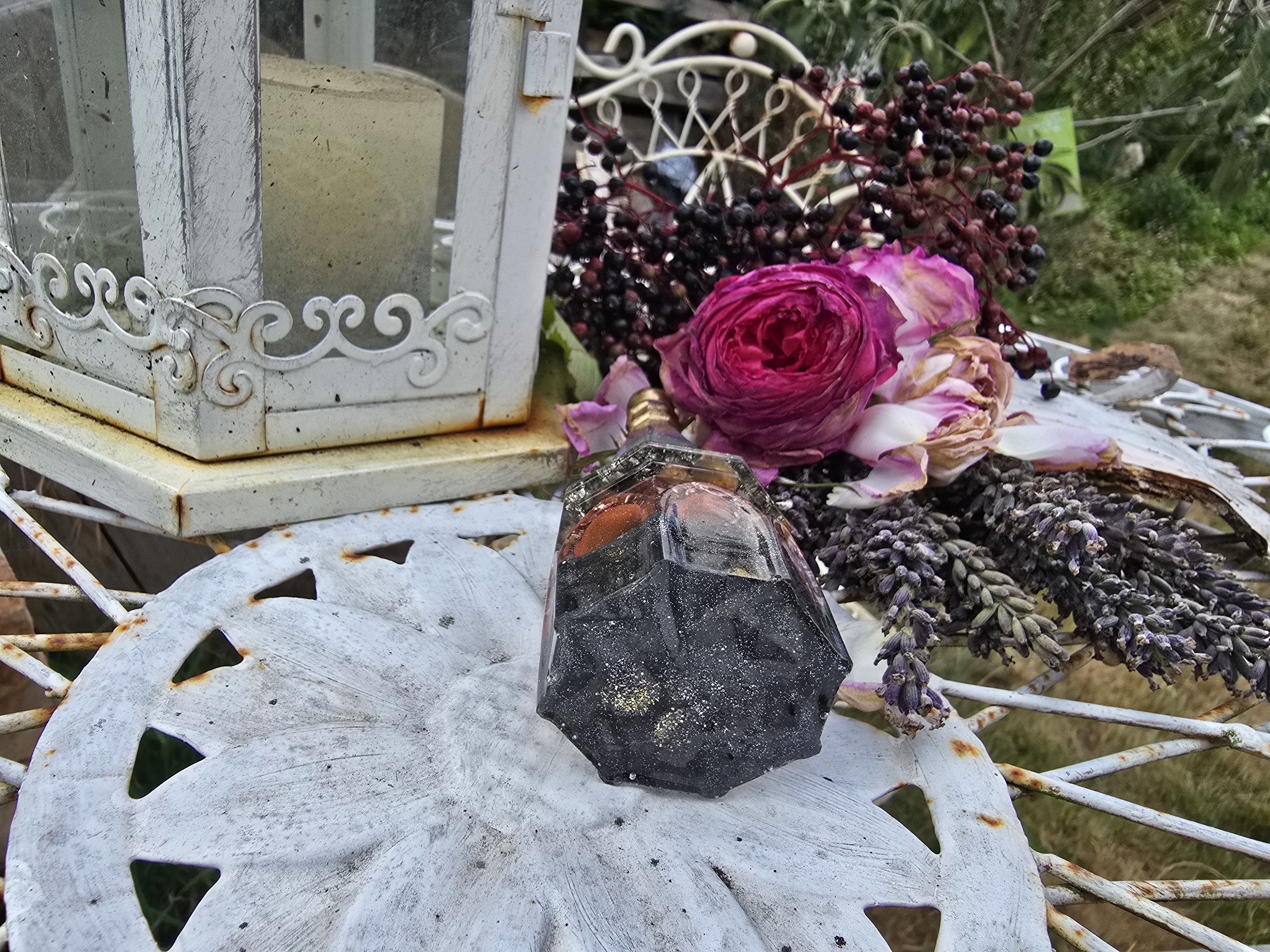 Dieser schöne Turm steht auf einem Schungit Sockel, der für Stabilität und Schutz sorgt.