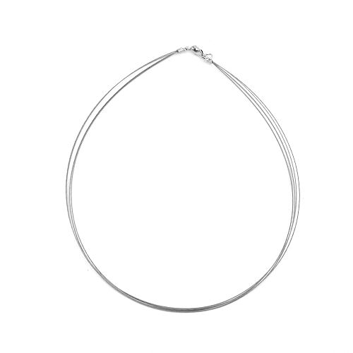 Beliebtes Accessoire für Schmuckanhänger - kunststoffummantelter vierfacher Edelstahldraht mit silberfarbenem Karabiner-Verschluss. Die 40cm kurze Kette aus Stahldraht ist bei hochwertigen Modeschmuck Kettenanhängern optisch sehr wirkungsvoll. Anhänger/Schmuckperlen müssen eine etwas größere Öse oder Loch haben, damit sie über das Endteil der Drahtkette gezogen werden können. Der weiche und geschmeidige Draht liegt gut am Hals an und sollte beim Schlafengehen und während der Aufbewahrung sorgfältig abgelegt werden um Knicke im Verlauf zu vermeiden.
