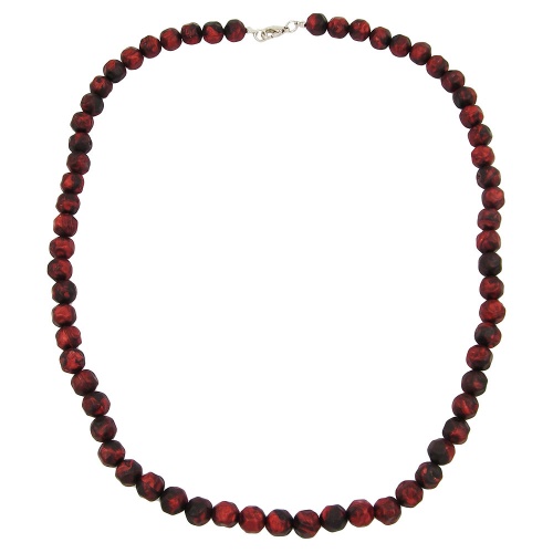 Diese wunderschöne glutrote Perlenkette besteht aus 10mm großen, rot-schwarzen, metallisch glänzenden, unrunden, rundum leicht angedrückt wirkenden Kunststoff-Perlen und passt sehr gut zur kuscheligen Herbst- und Wintermode. Den dekorativen Abschluss der 60cm langen, klassisch gefädelten Modeschmuck-Kette bildet ein silberfarbener Karabiner-Verschluss plus Verlängerungskettchen aus eloxiertem Aluminium. Lange Ketten ab 60cm eignen sich gut als Pulloverkette und können ohne den Verschluss zu öffnen über den Kopf angelegt werden. Alle Bestandteile dieser Kette wurden in Deutschland produziert und die Kette selbst in Handarbeit - made in germany - fertiggestellt.