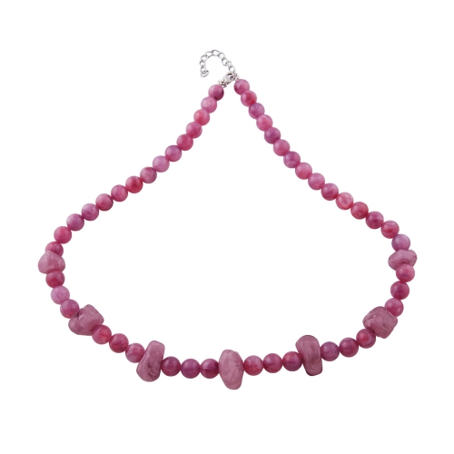 Diese klassisch gefädelte Halskette besteht aus wunderschönen fliederfarbenen, lila-weiß-rot-marmorierten, 10mm großen, glänzenden, hochwertigen Kunststoffperlen, deren gerader Verlauf durch 7 einzelne unrunde Perlen im gleichen Farbton aufgelockert wird. Die 55cm lange Kette wird mit einem silberfarbenen Karabiner plus Verlängerungskettchen aus eloxiertem Aluminium geschlossen. Farbiger Schmuck betont die Farben der Kleidung oder setzt zusätzliche Akzente. Alle Bestandteile dieser Modeschmuck-Kette wurden in Deutschland produziert und die Kette selbst in Handarbeit - made in germany - fertiggestellt.