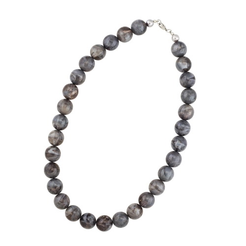 Wunderschöne 50cm lange Modeschmuck-Kette mit extravaganten grau-glitter-transparent-marmorierten 16mm großen Perlen aus hochwertigem Kunststoff, gefädelt auf Climax-Perlonseidenfaden, mit silberfarbenem Karabiner-Verschluss. Diese dekorative Kullerkette ist das passende Accessoire für die Herbst- und Wintergarderobe! Alle Bestandteile dieser Modeschmuck-Kette wurden in Deutschland produziert und die Kette selbst in Handarbeit - made in germany - fertiggestellt.