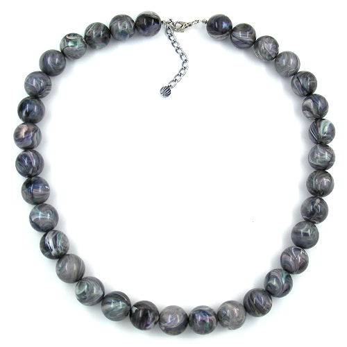 Kette 16mm Perlen Kunststoff grau-marmoriert 55cm