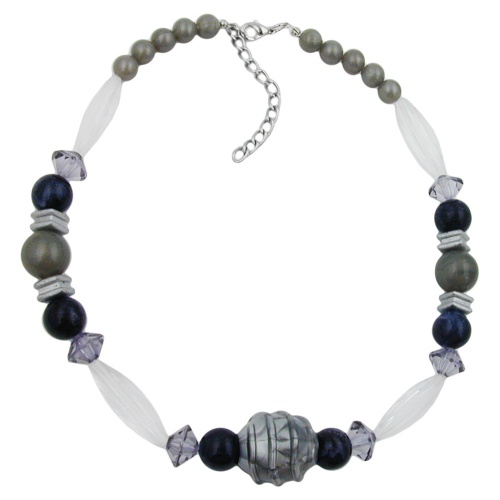 Mit dieser wunderschön protzigen Modeschmuck-Kette können Sie auch Grau in Grau auffallen! Die 24x8mm große, grau-marmorierte Olivenperle mit den aufgesetzten Rillen wurde mit 4 kristallklaren, 30x9mm großen Rillenoliven aus hochwertigem Kunststoff und verschiedenen anderen grau-marmorierten Perlen kombiniert. Die 42cm lange, enganliegende Halskette wurde klassisch gefädelt und wird mit einem großen silberfarbenen Karabiner plus Verlängerungskettchen aus eloxiertem Aluminium verschlossen. Alle Bestandteile dieser Kette wurden in Deutschland produziert und die Kette selbst in Handarbeit - made in germany - fertiggestellt.