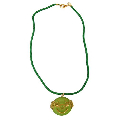 Dieser lustige Clown bringt jeden zum Lachen! Die niedliche Kinderkette mit dem runden, bauchigen, beidseitigen Clownsgesicht aus hellgrün-transparentem Kunststoff bringt bestimmt Kinderaugen zum Leuchten. Die vertieften Zeichnungen mit dem charakteristischen Clownsgesicht, auch mit einer kleinen runden Knubbelnase, wurden beidseitig goldfarben ausgemalt. Der Clown hängt an einer 40cm langen grün Viskosekordel mit goldfarbenen Karabiner-Verschluss. Wer albern sein und über sich selbst lachen kann, geht fröhlicher durch s Leben und bleibt gesund! Ein niedliches Geschenk zur Schuleinführung, Geburtstag oder einfach mal zwischendurch. Alle Bestandteile der Modeschmuckkette wurden in Deutschland produziert und in Handarbeit - made in germany - fertiggestellt.