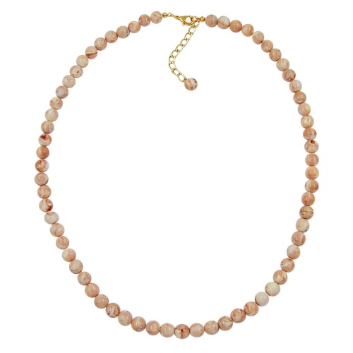 Für alle Naturliebhaber! Klassisch gefädelte Modeschmuck-Kette mit 8mm großen, beigefarben-natur-marmorierte Rundperlen aus hochwertigem Kunststoff. Diese zeitlos schöne Kette passt gut zu allen erd- und naturfarbenen Kleidungsstücken. Das 55cm lange Collier wird mit einem goldfarbenen Karabiner plus Verlängerungskettchen aus eloxiertem Aluminium und zusätzlicher kleiner beige-marmorierter Perle als Abschluss geschlossen. Farbiger Modeschmuck betont die Farben der Kleidung oder setzt zusätzliche Akzente. Alle Bestandteile dieser Kette wurden in Deutschland produziert und die Kette selbst in Handarbeit - made in germany - fertiggestellt.