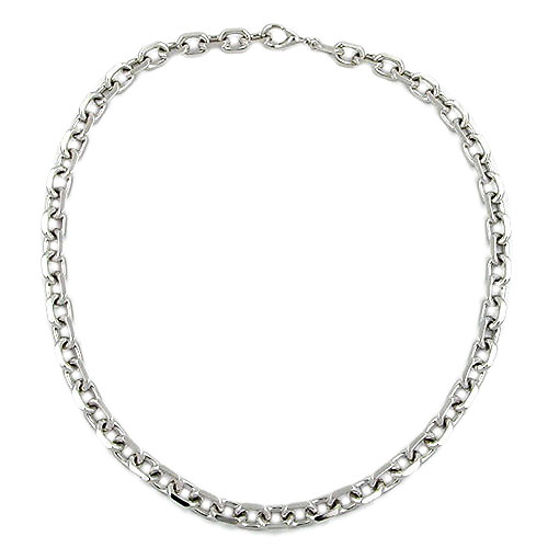 Echt stark! Massive stabile Modeschmuckkette aus Tombak (eine Messinglegierung) mit rhodinierter und diamantierter (geschliffener) Oberfläche. Die 9mm dicke, robuste Ankerkette im Edelstahl-Look, hergestellt in Deutschland in hochwertiger Juwelierqualität, ist 50cm lang, ca. 68g schwer und wird mit einem Karabiner verschlossen. Sie kann solo - einzeln - sowohl als Damenschmuck als auch als Herrenschmuck getragen werden.