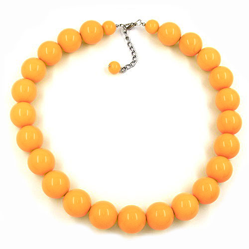 sommerliches Collier mit dekorativen 20mm Kunststoffperlen in freundlichem gelb, Verschluss silber-farbig mit Verlängerungskettchen und Perle als Abschluss, in Deutschland gefertigte Handarbeit