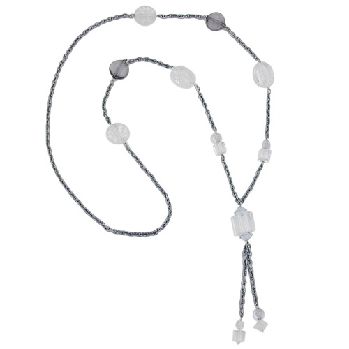 Wunderschöne, 95cm lange, dekorative Modeschmuck-Kette für die modebewusste Trägerin! Die federleichte Ankerkette aus silbergrau eloxiertem Aluminium wird durch verschiedene hellgraue und kristall-transparente Kunststoffperlen aufgelockert, die zwischen einzelne Kettenabschnitte gekettelt worden sind. Die aufwendig hergestellte rustikale Kette passt universell zu allen Farben und Kleidungstilen, vom sportlichen Jeanslook bis zum eleganten Etuikleid. Lange Ketten ab 60cm eignen sich gut als Pulloverkette und können ohne den Verschluss zu öffnen über den Kopf angelegt werden. Farbiger Schmuck betont die Farben der Kleidung oder setzt zusätzliche Akzente. Alle Bestandteile dieser Kette wurden in Deutschland produziert und die Kette selbst in Handarbeit - made in germany - fertiggestellt.