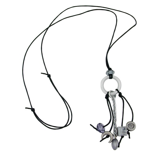 Diese flippige locker leichte Y-Kette setzt mit ihren kleinen rauchblauen Farbtupfern dezente farbige Akzente. Der ca. 10cm lange Y-Behang ist an einer einfachen schwarzen Baumwollkordel befestigt, Gesamtlänge 80cm, einkürzbar bis auf 40cm mittels verstellbarem Schiebeknoten. An dem 40mm großen Aluminiumring baumeln kurze schwarze Kordelenden, verziert mit verschiedenen altsilberfarbenen und rauchblauen Kunststoffperlen, zusammen mit altsilberfarbenen Erbskettengliedern aus Aluminium. Die hippe Teenagerschmuck-Kette kann ohne den Verschluss zu öffnen über den Kopf angelegt werden. Alle Bestandteile dieser Kette wurden in Deutschland produziert und die Kette selbst in Handarbeit - made in germany - fertiggestellt.