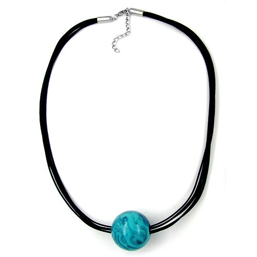 große Kunststoff-Kugel, 37mm, türkis-blau-marmoriert auf 6-fach Kordel dunkelblau, Verschluss silber-farbig mit Verlängerungskettchen, in Deutschland gefertigte Handarbeit