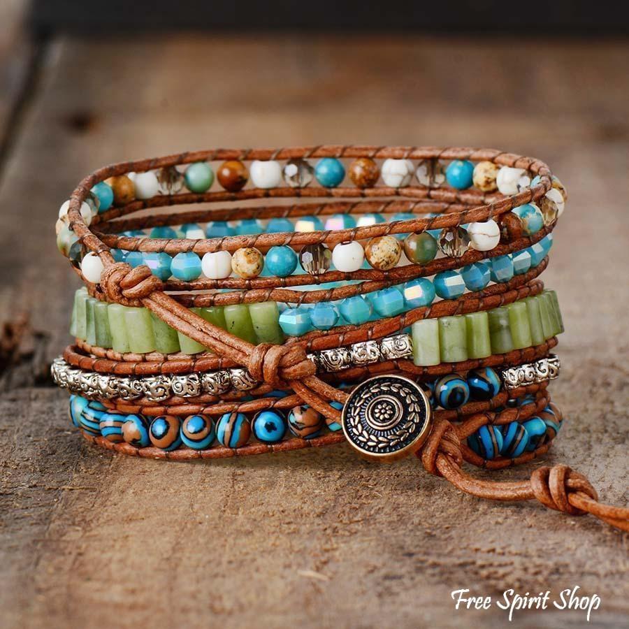 Natürliches türkisfarbenes Jaspis Wickelperlenarmband