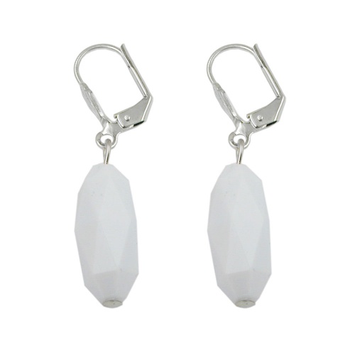 Die schönen sommerlich leichten Modeschmuck-Ohrringe passen im neutralen Weiß zu jeder Farbe Ihrer Kleidung. Der niedliche kleine Ohrhänger besteht nur aus einer einzelnen 20x8mm großen, weiß-glänzenden facettierten Olive aus Kunststoff, befestigt an einer silberfarbenen Ohrbrisur aus Messing (Weißbronze), Gesamtlänge: 40mm. Alle Bestandteile des Ohrschmucks wurden in Deutschland produziert und in Handarbeit - made in germany - fertiggestellt. Verkauf paarweise.