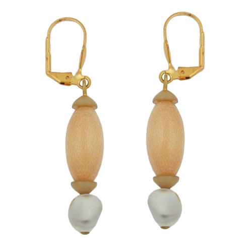 Diese federleichten Modeschmuck-Ohrringe mit Klappbügel setzen den passenden i-Punkt zu dem Naturtrend in Ihrer Kleidung. Der Ohrhänger besteht aus einem Pendel mit einer hellen Holzolive und einer hellgrau-marmorierten unrunden Kunststoffperle, befestigt an einer goldfarbenen Ohrbrisur aus Messing, Gesamtlänge: 55mm. Alle Bestandteile des Ohrschmucks wurden in Deutschland produziert und in Handarbeit - made in germany - fertiggestellt. Verkauf paarweise.