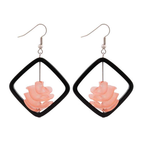 Diese leichten, auffallend großen Modeschmuck-Ohrringe mit der beweglichen, apricotfarben-transparenten Spiralperle in der Mitte eines schwarzen Vierecks sind ein echter Blickfang. Der Ohrhänger besteht aus einem schwarz-glänzenden, 32x32mm großen, quadratischen Rahmen aus Kunststoff, in dem sich eine wunderschöne, 20mm große Perle aus hochwertigem Kunststoff auf einem Nietstift senkrecht frei bewegen kann. Der silberfarbene Ohrhaken aus Messing (Weißbronze) ist an einer Ecke befestigt, die Gesamtlänge des Ohrrings beträgt ca. 60mm. Alle Bestandteile des Ohrschmucks wurden in Deutschland produziert und in Handarbeit - made in germany - fertiggestellt. Verkauf paarweise.