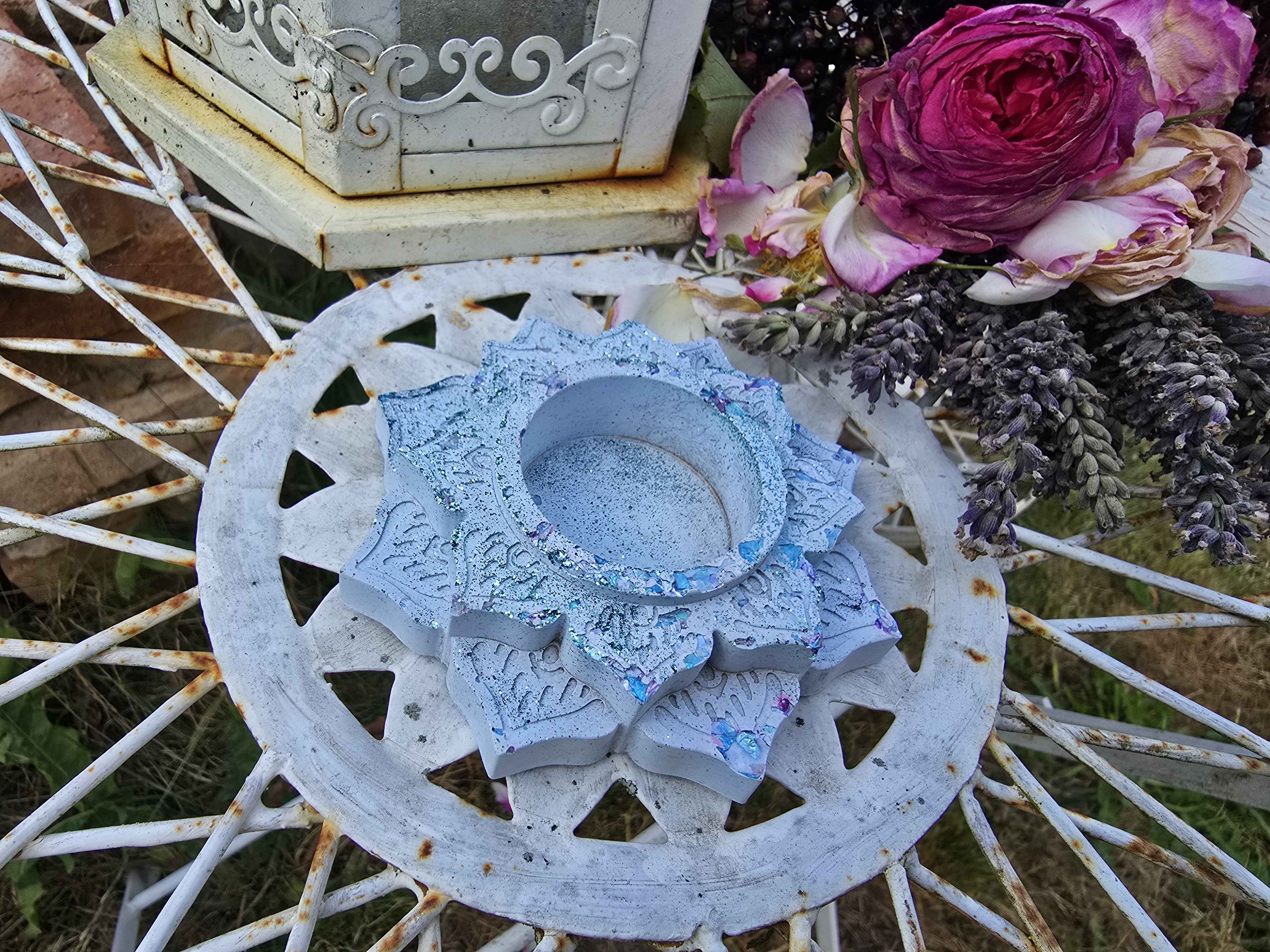 Diese Lotusblüte ist ein handgefertigtes Unikat. Sie dient nicht nur als Teelichthalter, sondern verzaubert dich wie aus einem Märchen von Tausend und einer Nacht. Ein schönes Accessoires für gemütliche Abende bei Kerzenschein.